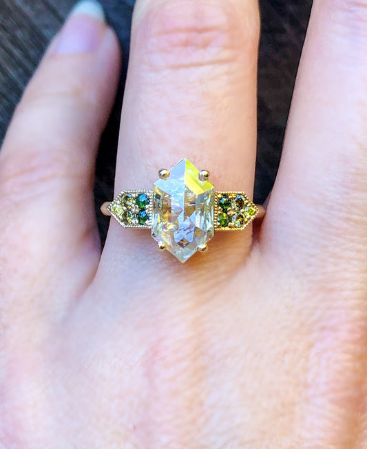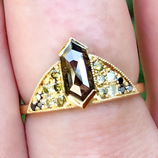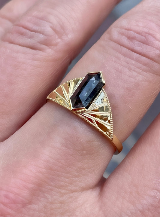 1.87ct Hexagon Icy Salt & Pepper Modern Art Deco Ring