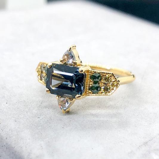 Blue-Grey Spinel & Peppery Diamond 18k Gold Ring