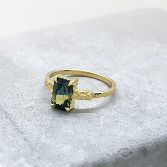 Teal Spinel & Natural Fancy Diamond 18k Gold Ring