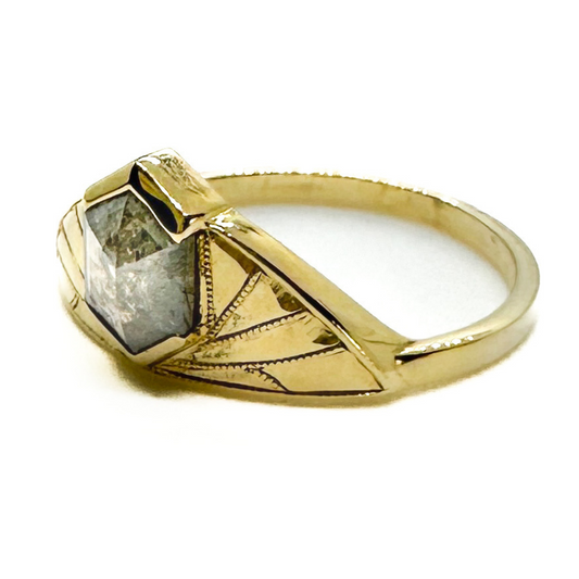 Eugenia OOAK Salt & Pepper Diamond 18k Gold Ring